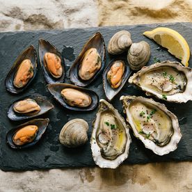 Water temperature matters. Cold water means mussels, clams, and oysters are storing energy rather than spawning — firmer, fuller, and at their best from late autumn through spring.